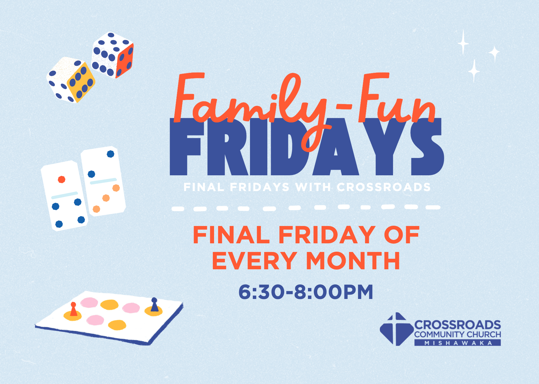 Come join us for our monthly Friday Night Family Game Night! This is a family event—so bring the kids and feel free to bring your favorite game to share.